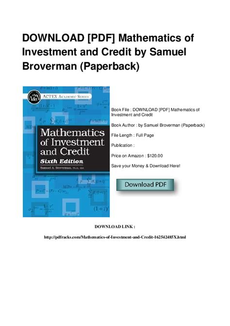 VBM - Download online Mathematics Investment Credit Broverman Pdf Library Binding ManyBooks